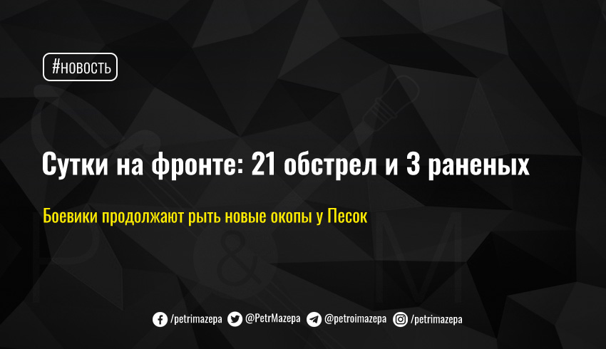 В лесопосадке вблизи населенного пункта Пески представители вооруженных формирований Российской Федерации продолжили обустраивать новые оборонительные сооружения. Вчера зафиксировано еще около 100 метров новых укреплений, в направлении позиций Вооруженных Сил Украины. Такие действия являются грубым нарушением Минских соглашений. О фактах нарушений Украинская сторона СЦКК оперативно проинформировала СММ ОБСЕ.