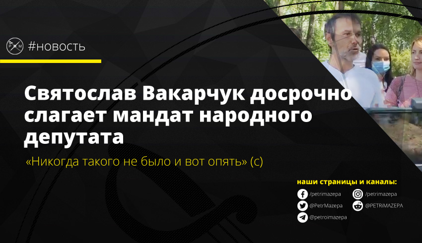 Святослав Вакарчук сообщил, что он хотел привести «в парламент новых прогрессивных, порядочных, патриотических людей». И теперь он считает, что выполнил это задание. А поскольку его никогда не интересовали политические посты, то оставаться в ВР он не видит смысла.