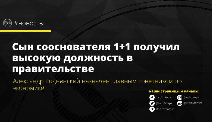 Младший сын сооснователя телеканала «1+1» Александра Роднянского, также Александр, назначен на должность главного экономического советника правительства.