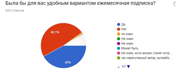 С вариантом ежемесячной подписки самое время ставить статус «всё сложно». 48,2% однозначно против и 41,9% за без уточнений.