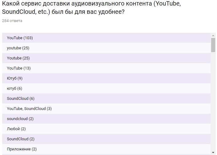 В случае размещения нового вида контента большинство читателей отдали бы предпочтение YouTube (в разных написаниях данного сервиса), а на втором месте угнездился так и не закрывшийся SoundCloud.