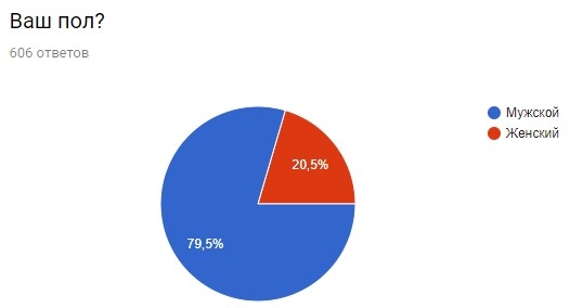 А вот вопрос о поле наших читателей выдал весьма неоднозначный результат. Почти 80% мужчин и только 20% женщин.