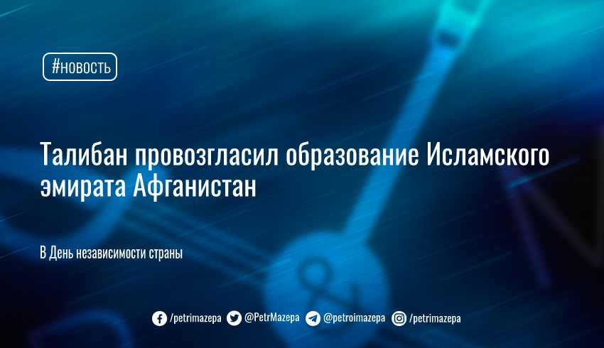Боевики движения «Талибан» 19 августа провозгласили образование Исламского эмирата Афганистан. Это название они уже использовали ранее, в период с 1996 по 2001 год.