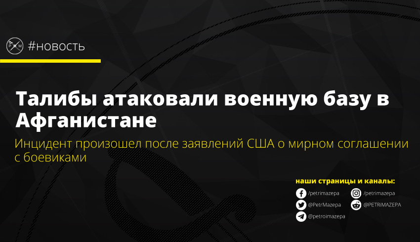 Боевики группировки «Талибан» совершили нападение на военную базу на севере Афганистана. По меньшей мере пять военных погибли. Инцидент произошел на фоне заявлений США о возможном мирном соглашении.