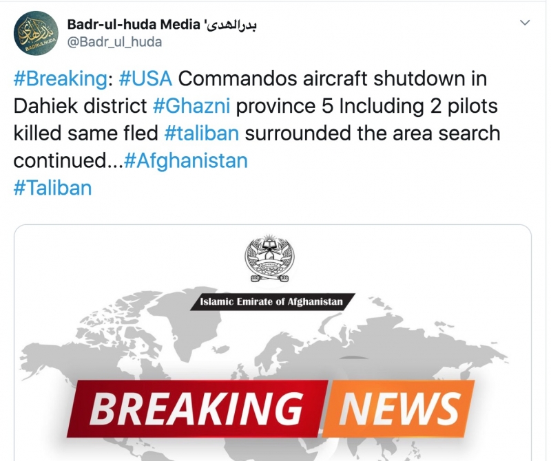 Позднее он добавил, что талибы утверждают – они сбили американский военный самолет и все, кто был на борту, погибли (5 человек).