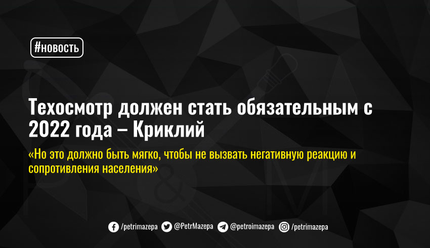 - 28 мая 2020 года Криклий пообещал, что техосмотр будет возвращен – причем планировалось его вернуть уже с этого года, но без полицейской монополии.