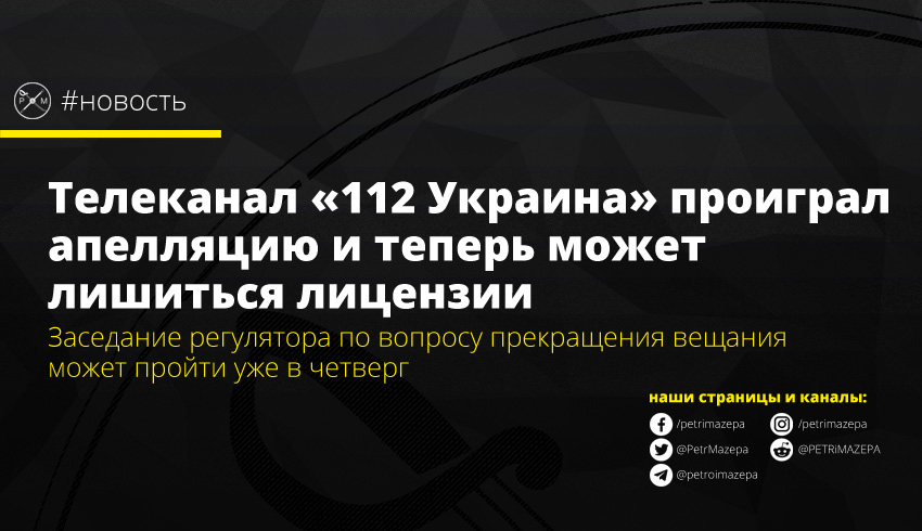 Телеканал «112 Украина» проиграл апелляцию и теперь может лишиться лицензии
