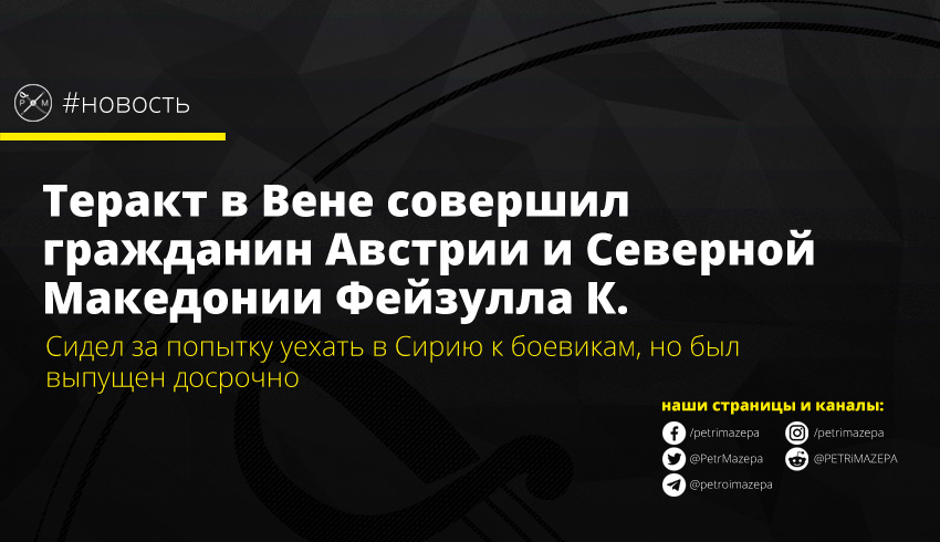 В Министерстве внутренних дел Австрии раскрыли личность террориста, который совершил теракты в Вене и был убит полицией. Им оказался 20-летний Фейзулла К., гражданин Австрии и Северной Македонии.