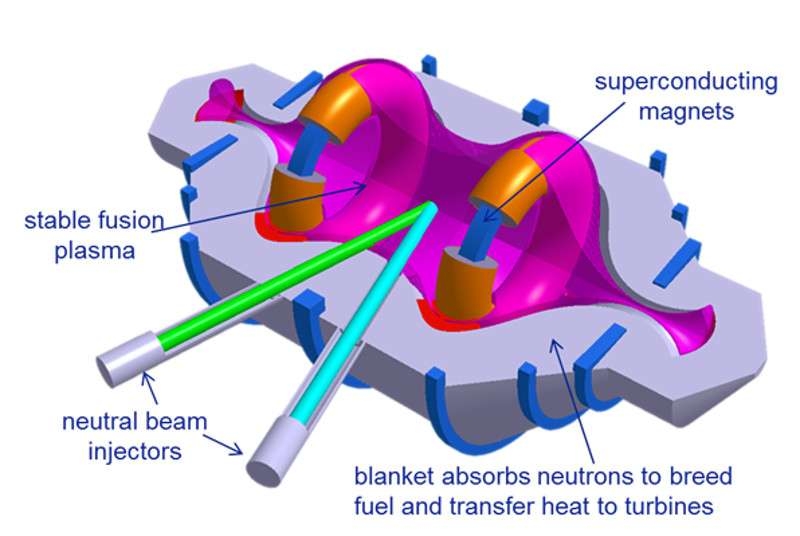 CFR избегает этих проблем, радикально изменив подход к удержанию плазмы в сосуде. Вместо удержания плазмы внутри трубчатых колец, серия сверхпроводящих катушек создаёт новую геометрию магнитного поля, в которой плазма удерживается в более широких пределах всей реакторной камеры. Сверхпроводящие магниты внутри катушек генерируют магнитное поле вокруг внешней границы камеры. «Так что в нашем случае, вместо того чтобы велосипедная шина расширялась наружу, у нас есть нечто похожее на оболочку, которая расширяется в более прочную стену», — говорит Макгуайр. Поэтому система регулируется самонастраивающимся механизмом обратной связи, в результате чего чем дальше расширяется плазма, тем сильнее становится ограничивающее магнитное поле, сдерживающее её. Ожидается, что CFR будет иметь бета-предел, близкий к единице. «Мы должны выйти на 100% или больше», — добавляет он.