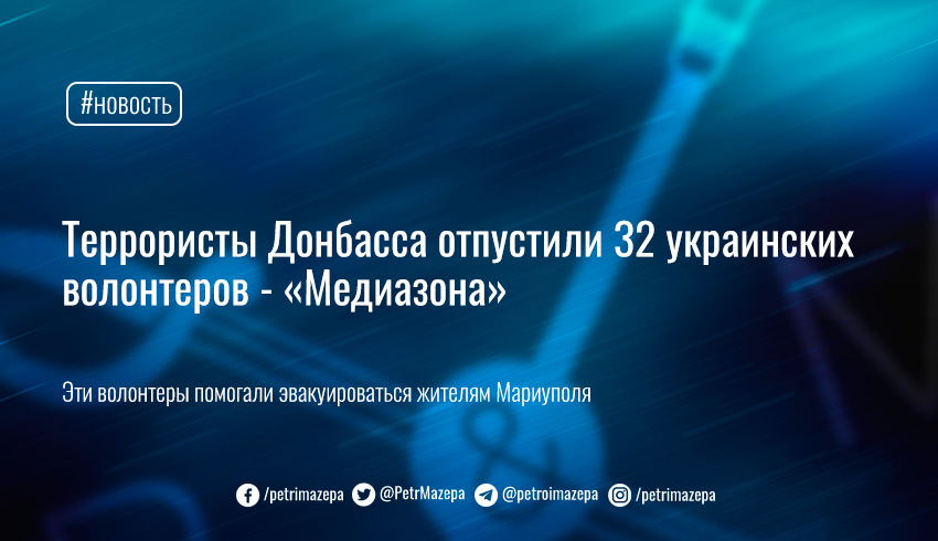 Группировка террористов Донбасса, именующая себя «Донецкой народной республикой», отпустила из плена 32 волонтера, похищенных в конце марта в окрестностях Мариуполя.