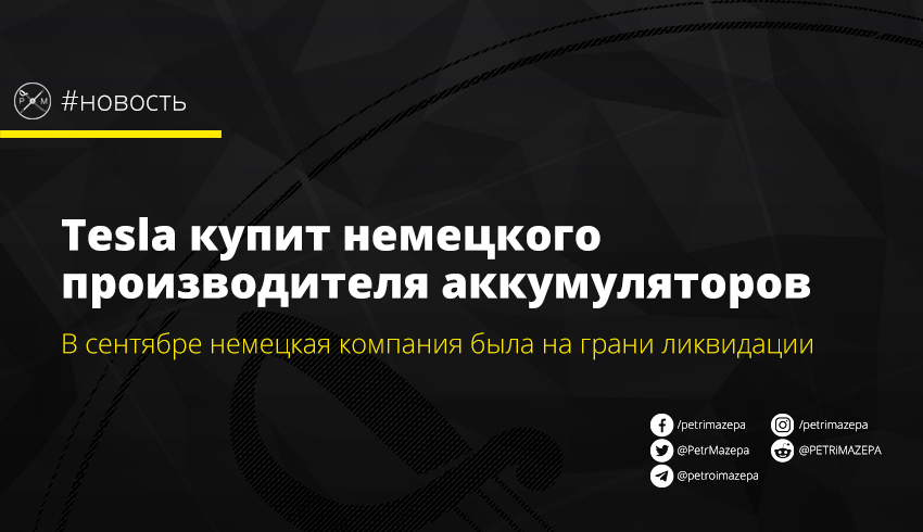 Компания Илона Маска Tesla купит немецкую фирму ATW Automation, занимающуюся сборкой аккумуляторных модулей и аккумуляторных батарей для автопромышленности.