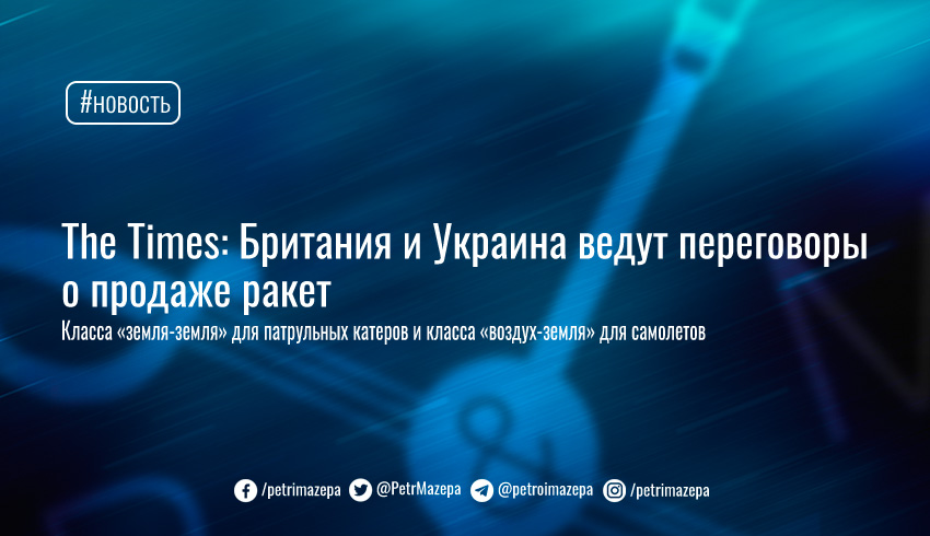 Великобритания впервые ведет переговоры с Украиной о продаже летального оружия. Страны обсуждают продажу Украине ракет класса «земля-земля» для украинских патрульных катеров и ракет класса «воздух-земля» для самолетов.