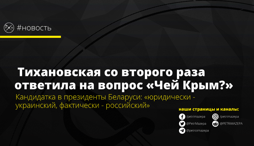 - Сегодня ранее Тихановская ушла от ответа на вопрос, чей же Крым. Вместо четкого ответа она начала говорить, что хочет объединять людей как политик.