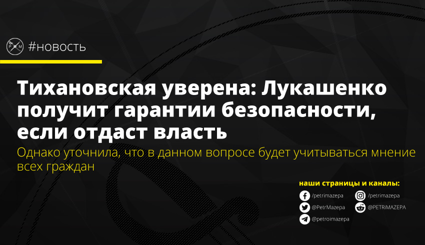 Лидер белорусской оппозиции, экс-кандидат в президенты Беларуси Светлана Тихановская готова предоставить нынешнему главе государства Александру Лукашенко гарантии безопасности, если он мирно покинет свой пост.