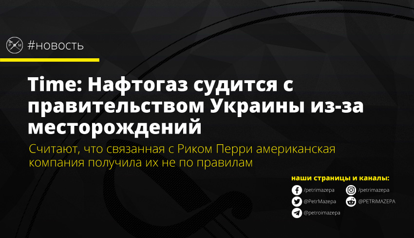 НАК «Нафтогаз України» подал в Окружной админсуд Киева (ОАСК) иск с просьбой отменить сделку, по которой правительство Украины в июле 2019 года передало права на разработку огромного комплекса нефтяных и газовых месторождений американской компании. Одним из владельцев этой компании является бывшего спонсора кампании Рика Перри, занимавшего на момент заключения сделки пост министра энергетики США.