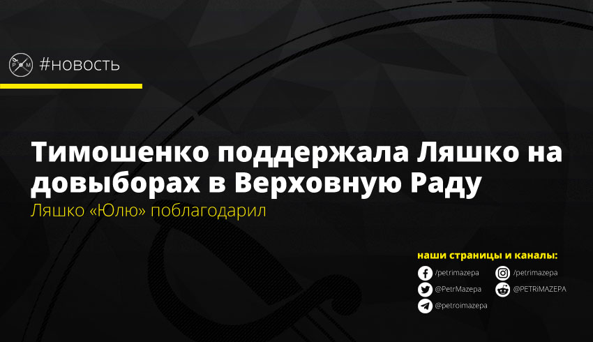 Лидер партии «Батьківщина» Юлия Тимошенко официально поддержала главу Радикальной партии Олега Ляшко на досрочных выборах в ВР по 208-му округу в Черниговской области, заявив, что ее партия не будет выдвигать своего кандидата. Ляшко уже поблагодарил Тимошенко за поддержку.