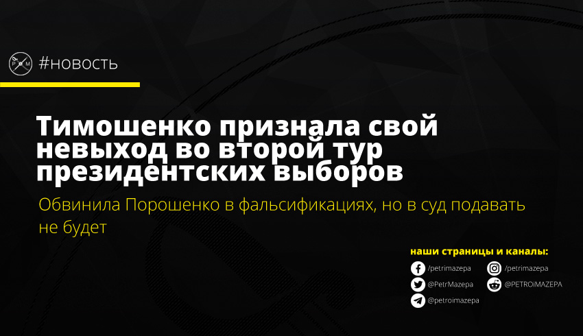 Тимошенко признала свой невыход во второй тур президентских выборов