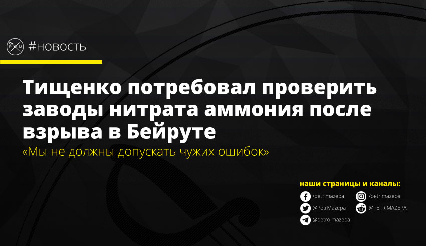 Тищенко потребовал проверить заводы нитрата аммония после взрыва в Бейруте