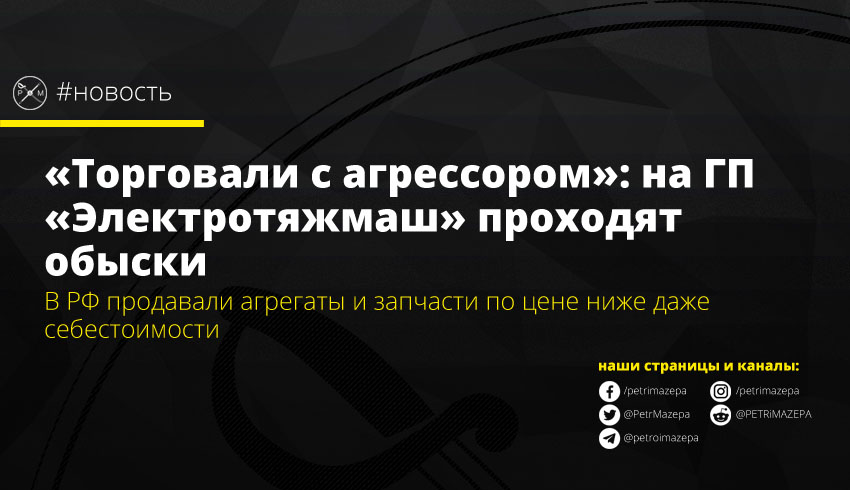 На харьковском государственном предприятии «Завод “Электротяжмаш”» проводятся обыски – по данным прокуратуры, руководство завода не просто торговало со страной-агрессором вопреки санкциям, но и продавали в Брянск товары по цене ниже даже себестоимости. Заведомо убыточные соглашения нанесли государству убытков на 1,1 млн грн, при том что удалось выполнить только два из заключенных предприимчивым руководством соглашений.