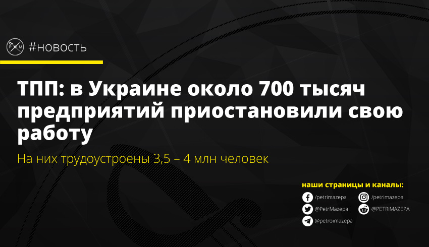 ТПП: в Украине около 700 тысяч предприятий приостановили свою работу