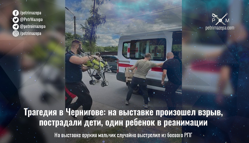 В Чернигове на мероприятии в центре города взорвался снаряд — пострадали дети, а также по информации СМИ и взрослые. Взрыв произошел на выставке, где оказалось боевое оружие, которое из-за действий ребенка сработало.