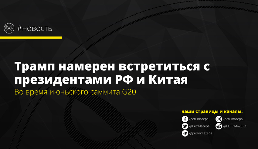 После провала переговоров между Китаем и США на прошлой неделе, американский президент Дональд Трамп заявил о намерении 28 – 29 июня встретиться с президентом КНР Си Цизньпином. Кроме того, он анонсировал встречу с главой страны-агрессора Владимиром Путиным.