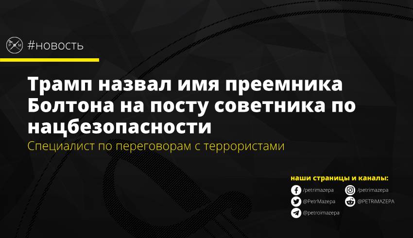 Трамп назвал имя преемника Болтона на посту советника по нацбезопасности