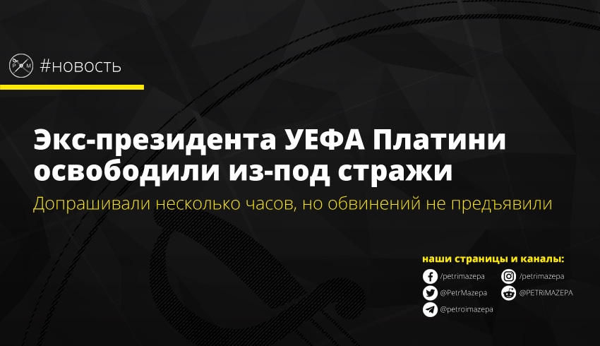 Бывшего президента Союза европейских футбольных ассоциаций (УЕФА) Мишеля Платини, которого накануне взяли под стражу во Франции, освободили после проведения допроса. По словам адвоката, обвинений его подзащитному предъявлять не стали.