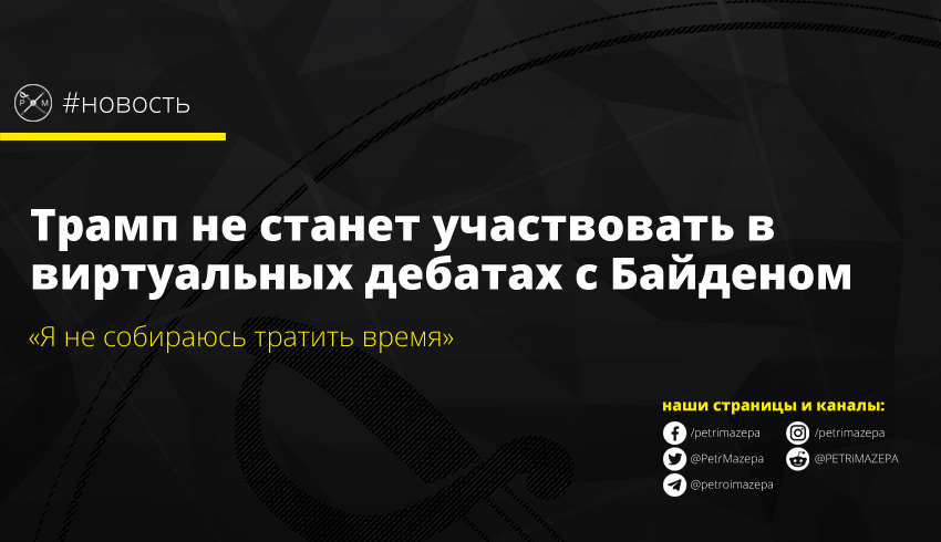 Трамп не станет участвовать в виртуальных дебатах с Байденом