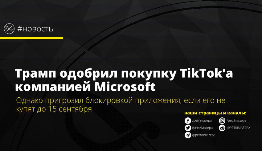 Трамп одобрил покупку TikTok’а компанией Microsoft