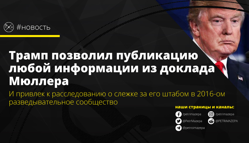 Трамп позволил публикацию любой информации из доклада Мюллера