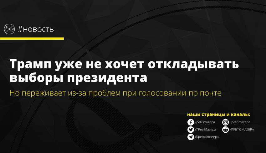 «Я не хочу переносить, я хочу провести эти выборы», - заявил Трамп во время брифинга.  При этом он отметил, что его беспокоят возможные проблемы с системой голосования по почте, которая была выбрана альтернативным вариантом для волеизъявления в условиях пандемии, передает Reuters.