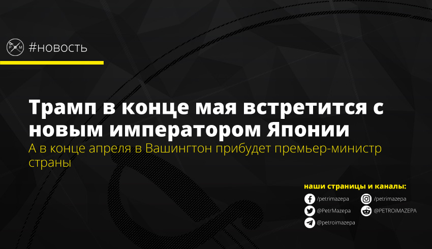 Визит Трампа в Японию запланирован на 25-28 мая. Он посетит Токио в новую эру – «Рэйва», которая наступит после того, как Нарухито 1 мая сменит на троне своего отца императора Акихито, сообщает местная газета «Майнити симбун».