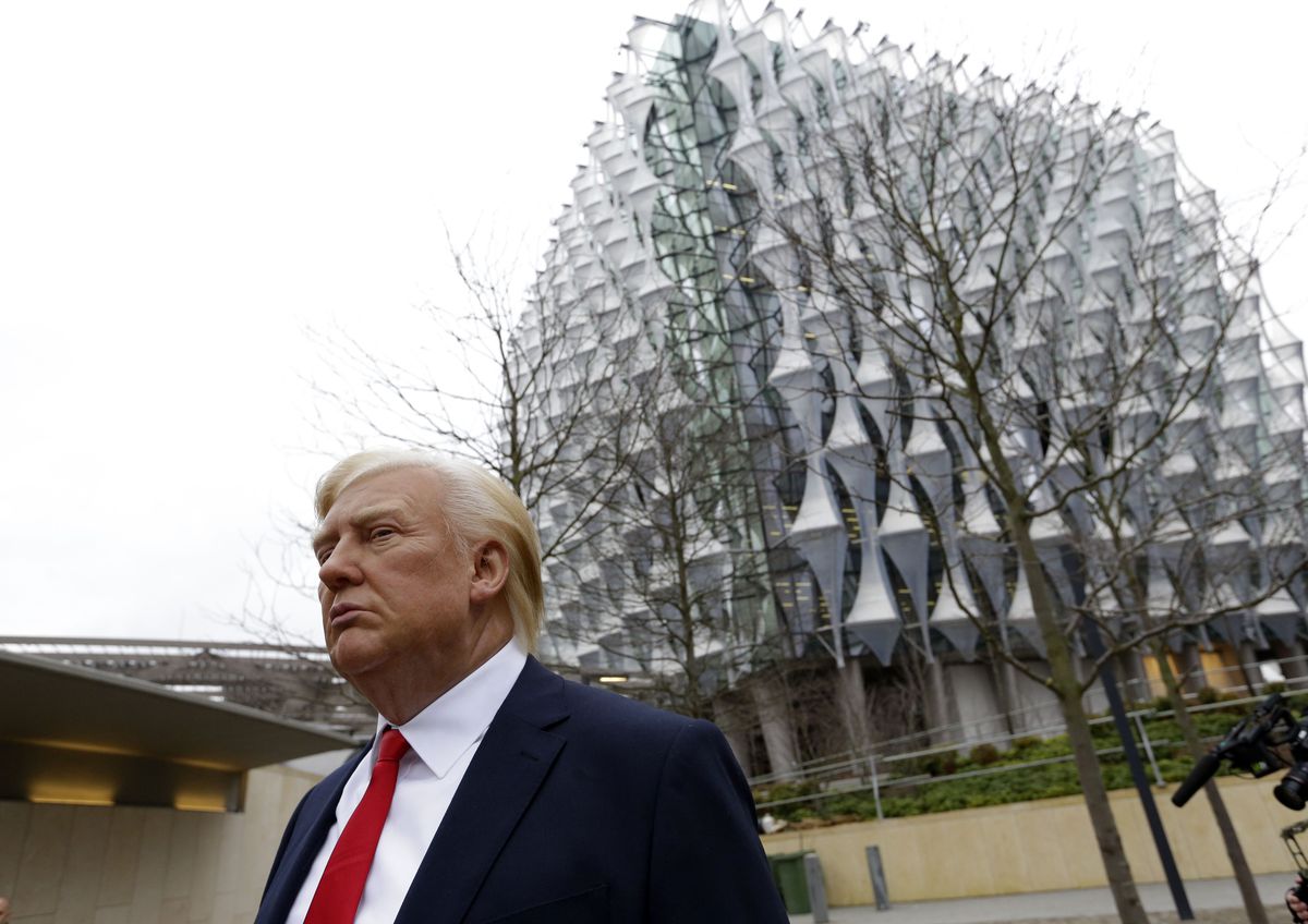 Отказ президента США приехать в Лондон в феврале этого года на открытие нового посольства США в Великобритании вдохновил Музей мадам Тюссо на забавную шутку. Восковую фигуру Дональда Трампа выставили у здания будущего американского представительства.