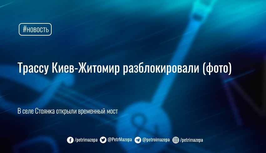В селе Стоянка Киево-Святошинского района открыли временный мост, что позволило разблокировать движение транспорта между Киевом и Житомиром.