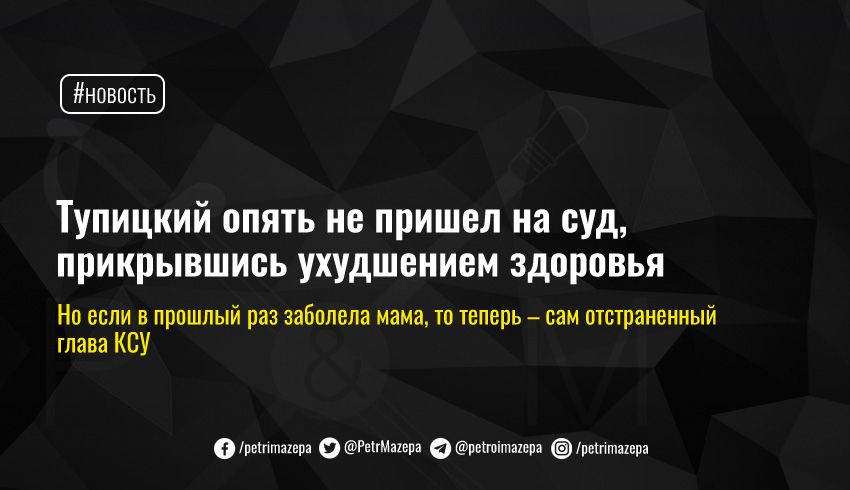Тупицкого якобы госпитализировали на стационарное лечение, передает «24 канал». В свою очередь, представители обвинения заявили, что документов о госпитализации нет и назвали неявку неуважительной.