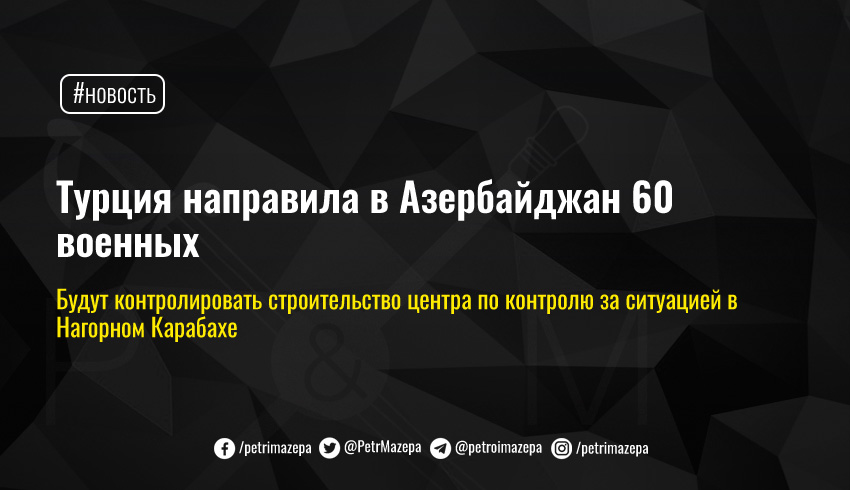Турция направила в Азербайджан 60 военных. Турецие и российские военные будут контролировать процесс строительства центра по контролю за ситуацией в Нагорном Карабахе. Какое время представители военного персонала там будут находиться, пока неизвестно.