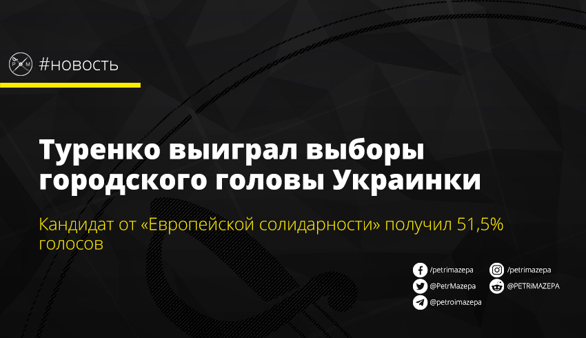 На выборах городского головы Украинки (Киевская область) победу одержал представитель «Европейской солидарности» Александр Туренко.