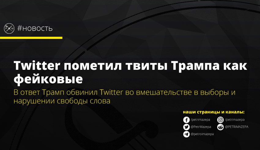 Twitter отметил некоторые записи президента США Дональда Трампа как такие, в которых может содержаться недостоверная информация. В ответ на это президент США обвинил Twitter в ущемлении свободы слова и вмешательстве в выборы 2020 года.