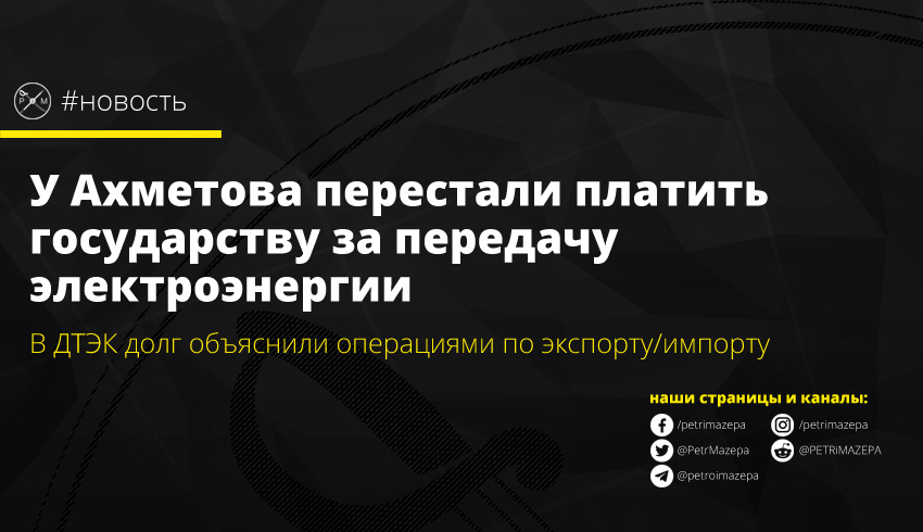 Компании группы ДТЭК в конце 2019 года перестали платить за услуги передачи энергии государственной компании «Укрэнерго». Журналисты утверждают, что по состоянию на 10 января уже накопился долг в размере 544,48 млн грн. В компании Ахметова свой долг перед «Укрэнерго» объяснили операциями экспорта/импорта электроэнергии.