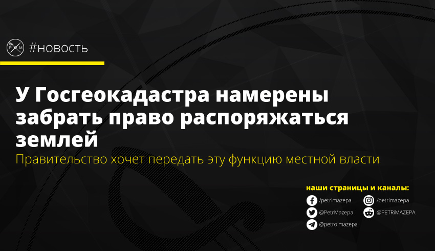 Правительство намерено внести в Верховную Раду законопроект, предлагающий забрать право распоряжаться землей сельскохозяйственного назначения у Государственной службы Украины по вопросам геодезии, картографирования и кадастра (Госгеокадастра). Это право хотят передать местной власти.
