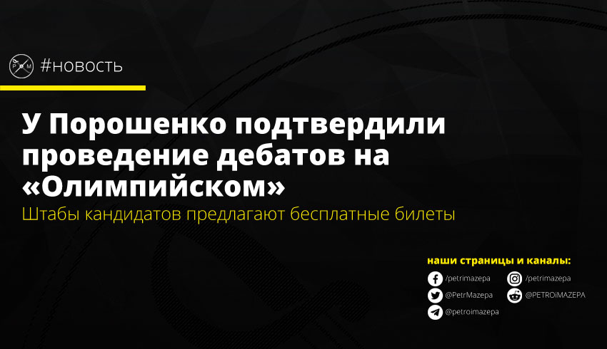 В штабе Петра Порошенко подтвердили проведение дебатов 19 апреля на НСК «Олимпийский», и предлагают всем желающим получить билеты по предварительной регистрации. О распространении билетов на дебаты ранее сообщил в одностороннем порядке и кандидат в президенты Владимир Зеленский.