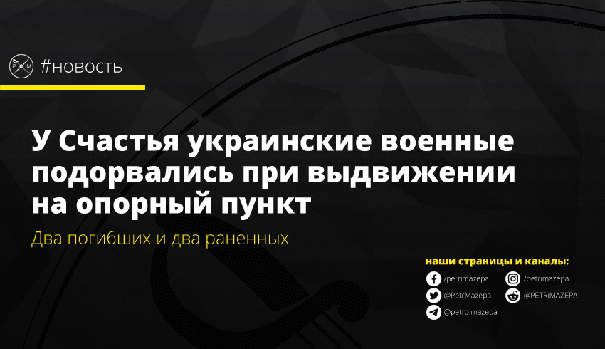 По данным пресс-центра ОС, «около 8:25 часов во время выдвижения на наблюдательный пост взводного опорного пункта в районе населенного пункта Счастье подорвались на неизвестном взрывном устройстве, установленном диверсионно-разведывательной группой противника» группа военнослужащих. В результате взрыва два бойца получили ранения несовместимые с жизнью и скончались на месте подрыва, а еще двое - получили ранения.
