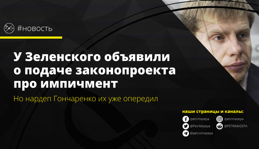 Гончаренко не упустил шанса потроллить Зеленского и его сторонников и сообщил, что поскольку президент еще не выполнил своего обещания, нардеп решил «помочь» президенту. Представление носит название «Проект закона о временной следственной комиссии Верховной Рады Украины для проведения расследования совершения президентом государственной измены или другого преступления».