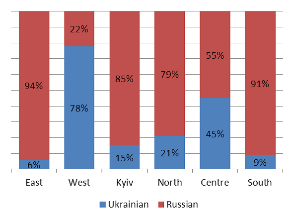 Только 18 процентов на юге и 15 процентов на востоке не считают себя патриотами Украины. Кроме того, на востоке и юге Украины 72 процента называют себя этническими украинцами, хотя только для 6 процентов проще общаться между собой на украинском языке.