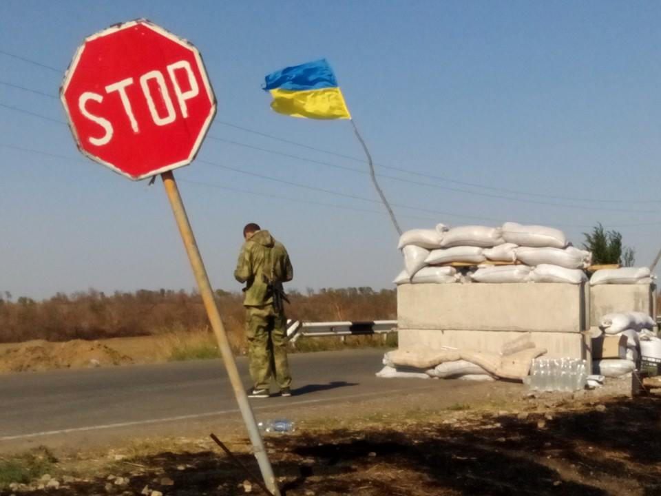 Начинался день достаточно безоблачно, на одном из восточных блокпостов на выезде из Мариуполя, который мы посетили, царило довольно благодушное настроение, все наслаждались, гм, перемирием... По поводу чего даже ходили без верхней одежды. Вот так: