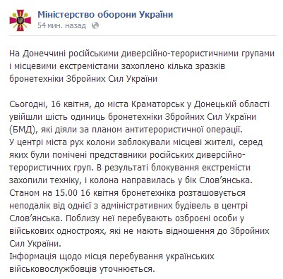 В-седьмых. Ложь в отчетах. За последние 4 часа нам удалось зафиксировать 2 противоположных заявления от Минобороны: что угнанные 6 БТРов – это «фейк», и в то же время – что это чистая правда. Такой беспорядок и путаница в отчетах не лучшим образом говорят о компании в целом и останавливают потенциальных доноров. Рекомендуем назначить единого ответственного за имидж компании (т.е., ВС Украины), мимо которого не делать никаких заявлений.