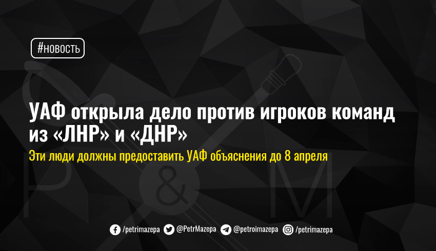 УАФ открыла дело против игроков команд из «ЛНР» и «ДНР»