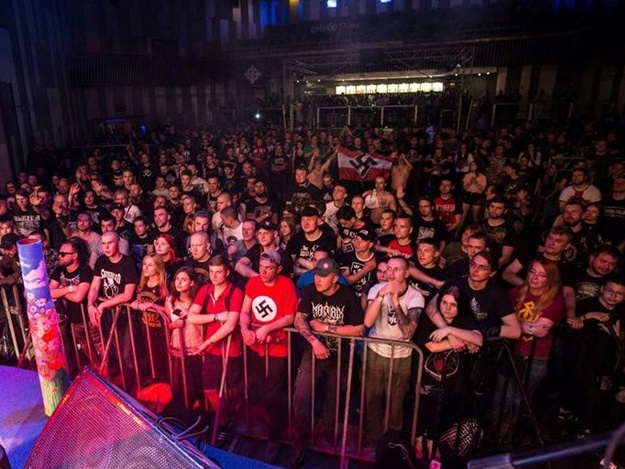 На прошлых выходных в столичном клубе Bingo состоялся юбилейный концерт группы «Сокири Перуна». На появившихся в сети после мероприятия фото и видео можно было увидеть свастику на татуировках и нацистский флаг, который принес один из зрителей. Всё это вызвало немало гневных постов и сегодня полиция таки решила рассказать, что уже открыла уголовное производство по данном случаю.