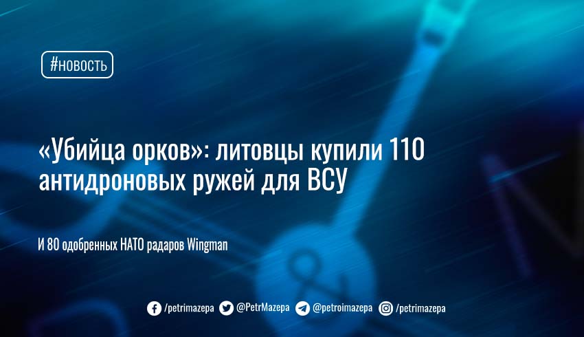 «Мы купили 110 антидроновых ружей для Украины и назвали их Orcrist “Убийца орков”. Сегодня мы добавили 80 Wingman — одобренных НАТО радаров, которые позволяют оператору антидронового ружья обнаруживать и сбивать русские дроны, даже если они их не видят, на расстоянии до 5 километров», — рассказал Тапинас.
